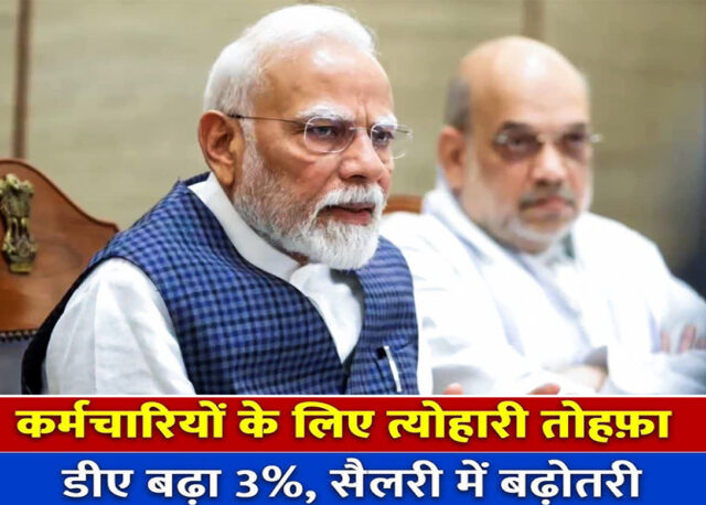 केंद्र सरकार ने बुधवार को केंद्रीय कर्मचारियों और पेंशनभोगियों के लिए महंगाई भत्ता (DA) में 3 प्रतिशत की बढ़ोतरी को मंजूरी दे दी। यह फैसला दशहरा और दिवाली जैसे त्योहारों से ठीक पहले आया है।