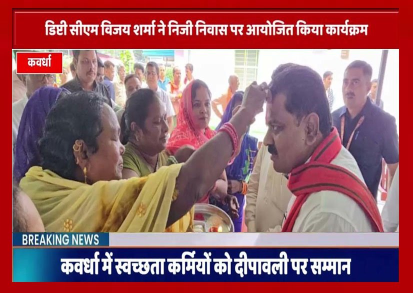 छत्तीसगढ़ में पहली बार दीपावली के अवसर पर राज्य के उपमुख्यमंत्री एवं कवर्धा के स्थानीय विधायक विजय शर्मा ने स्वच्छता कर्मियों का आत्मीय सम्मान कर एक मिसाल कायम की। उन्होंने अपने कवर्धा स्थित निवास में नगर पालिका क्षेत्र के लगभग 200 स्वच्छता दीदी और स्वच्छता कमांडो को आमंत्रित कर उनके साथ जलपान किया और स्नेहपूर्वक उपहार, मिठाई व फटाखे भेंट किए।