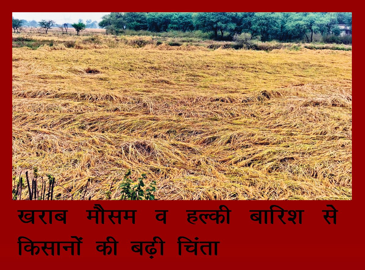 खराब मौसम के कारण जिले के किसानों की चिंता बढ़ गई है। किसानों को डर है कि कहीं उनकी फसल को बारिश नुकसान पहुंचाए। दरअसल जिले के कई किसानों के धान की फसल पककर तैयार हो गई है और धान की कटाई करने में व्यस्त हैं। क्योंकि समर्थन मूल्य पर धान की खरीदी भी 15 नवंबर से शुरू हो जाएगी। ऐसे में किसानों ने धान की कटाई व मिजाई शुरू कर दी है।