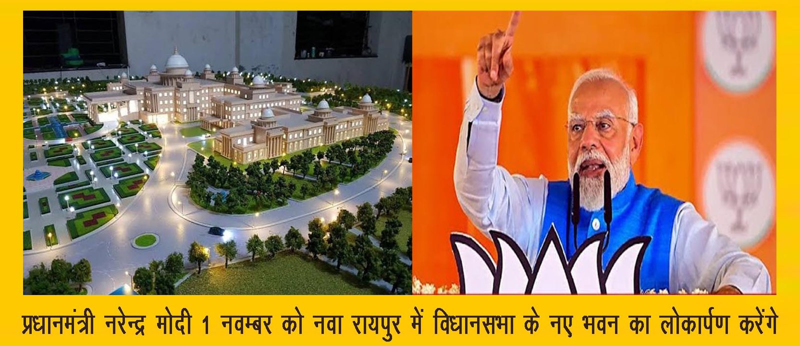 प्रधानमंत्री नरेन्द्र मोदी 1 नवम्बर को नवा रायपुर में विधानसभा के नए भवन का लोकार्पण करेंगे। राज्य निर्माण के बाद प्रधानमंत्री नरेंद्र मोदी पहले ऐसे प्रधानमंत्री होंगे, जो छत्तीसगढ़ की विधानसभा में आएंगे। राज्य निर्माण के बाद अब तक कोई भी प्रधानमंत्री विधानसभा नहीं आया है। हालांकि प्रधानमंत्री विधानसभा के किसी सत्र के लिए नहीं, बल्कि लोकार्पण समारोह में शामिल होंगे। इस दौरान प्रधानमंत्री मोदी, पूर्व प्रधानमंत्री अटल बिहारी वाजपेयी की प्रतिमा का अनावरण करेंगे। साथ ही पौधरोपण करेंगे।