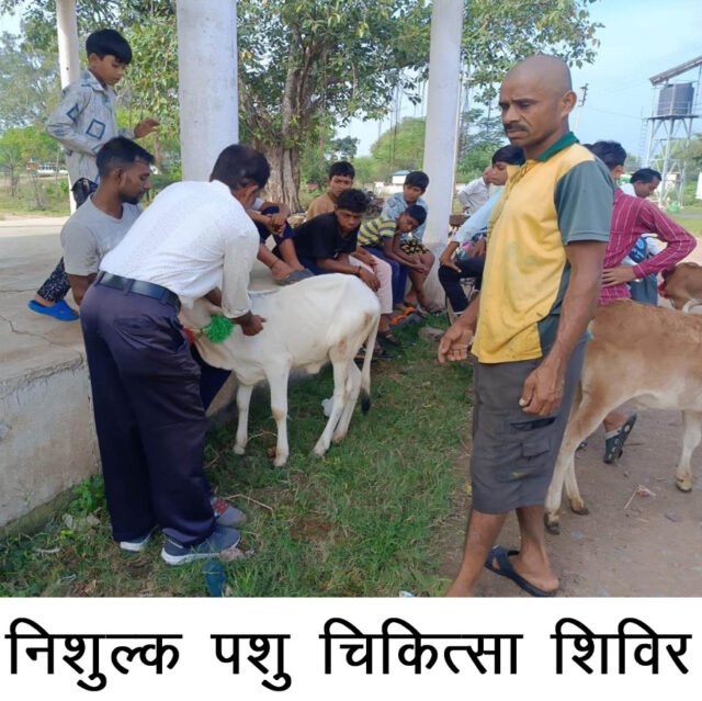 राजनांदगांव। पशुधन विकास विभाग के निर्देशानुसार ग्राम भोथीपार खुर्द पुराना में एक दिवसीय नि:शुल्क पशु चिकित्सा शिविर का आयोजन किया गया। पशु चिकित्सा शिविर में ग्राम के सभी किसानों ने बढ़-चढ़ कर हिस्सा लिया। शिविर में 110 पशुओं का उपचार किया गया। इसी तरह दवा वितरण 150, बंध्याकरण 32, किलनी जू नाशक दवा छिड़काव 150, कृमि नाशक दवा पान 115, गर्भ परीक्षण 1, बांझपन उपचार 1, ब्लड सैंपल 10, सीरम सैंपल 10, फिकल सैंपल 25 आदि कार्य किया गया। शिविर का लाभ 32 कृषकों ने लिया। शिविर से 136 पशुओं को लाभ हुआ। शिविर में सहायक पशु चिकित्सा क्षेत्राधिकारी श्री सुनील कुमार शंखवार, पशु परिचारक श्री देवानंद मेश्राम, श्री दीपेंद्र सोनबोईर, ग्राम के किसान श्री उमेश साहू, श्री धन्नालाल साहू, श्री राजेश यादव, श्री गजाधर यादव, श्री मुकेश यादव, श्री दीनूराम यादव, श्री रितेश साहू, श्री केजनाथ यादव उपस्थित थे।