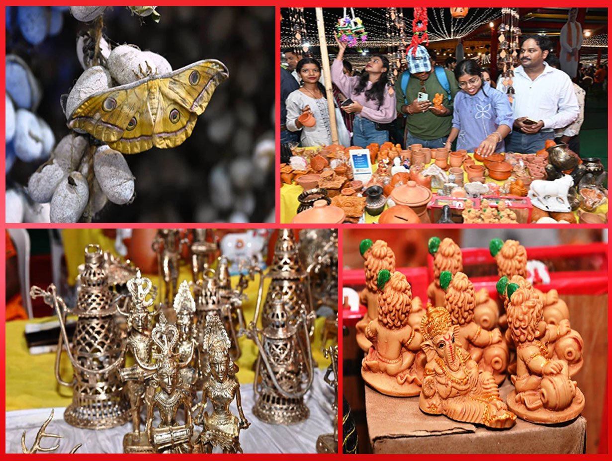 रायपुर: छत्तीसगढ़ राज्य स्थापना की 25 वीं वर्षगांठ रजत जयंती के अवसर पर नवा रायपुर में आयोजित भव्य राज्योत्सव में प्रतिदिन बड़ी संख्या में लोग पहुंच रहे हैं। राज्योत्सव परिसर में निर्मित शिल्पग्राम में बड़ी संख्या में लोग पहुंच रहे हैं और विभिन्न स्टॉलों से मनपसंद चीजों की खरीददारी कर रहे हैं। यहां प्रदेशभर से आए बुनकर और शिल्पकार अपने श्रेष्ठ उत्पादों का प्रदर्शन एवं विक्रय कर रहे हैं, जिनमें कोसा और रेशमी साड़ियाँ, पारंपरिक ड्रेस मटेरियल, खादी परिधान, बेलमेटल, काष्ठ कला, माटी कला और टेराकोटा की आकर्षक वस्तुएँ आगंतुकों को खूब लुभा रही हैं।
