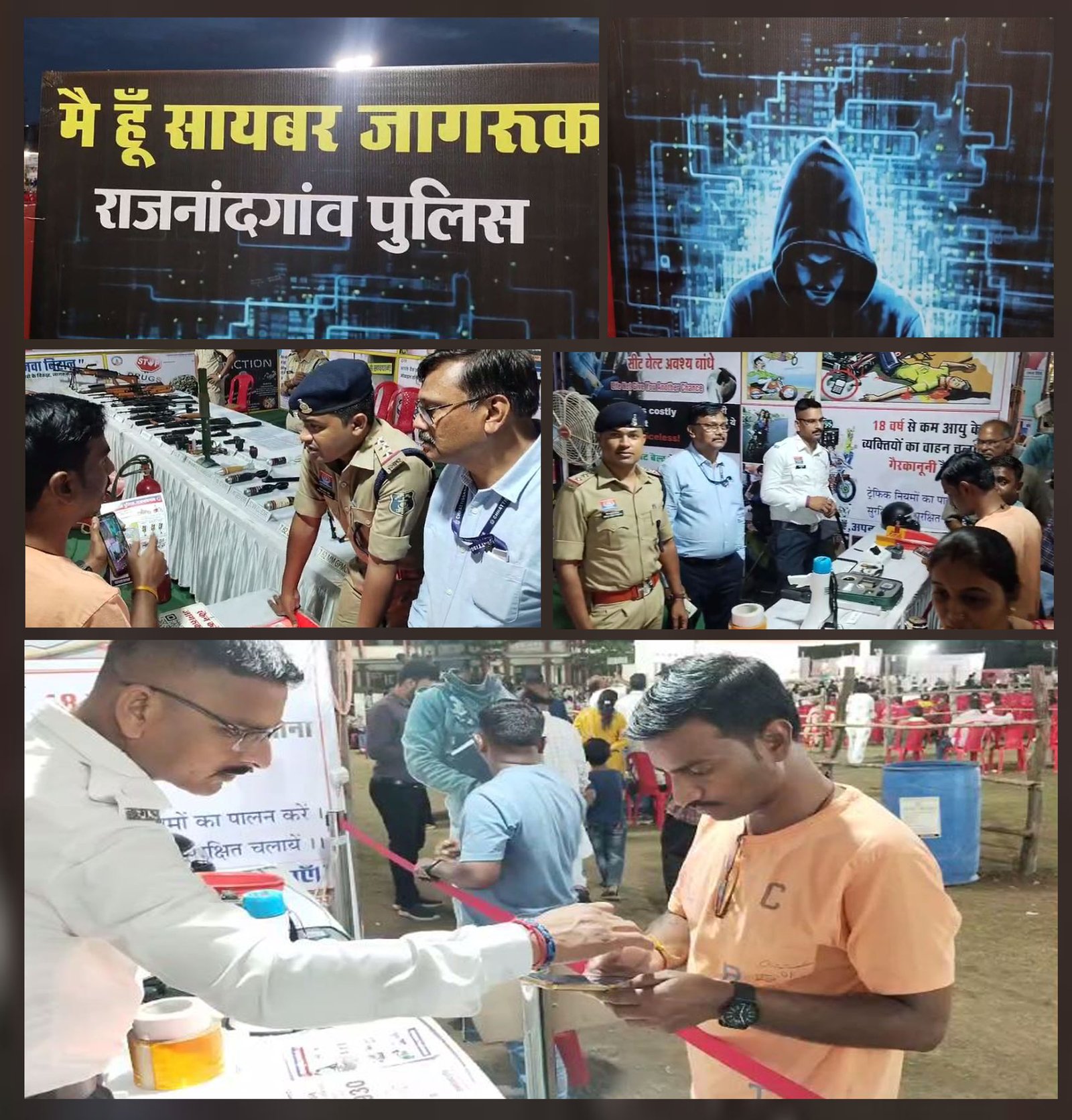 छत्तीसगढ़ रजत उत्सव- राज्योत्सव 2025 के अवसर पर दिनांक 02.11. 2025 को म्युनिसिपल स्कूल मैदान में स्टॉल लगाया गया। इस अवसर पर पुलिस अधीक्षक राजनांदगावं सुश्री अंकिता शर्मा के निर्देशन में जिला पुलिस बल राजनांदगांव द्वारा सायबर सेल, यातायात शाखा, आरमोर्र शाखा की संयुक्त टीम द्वारा जागरूकता अभियान चलाया गया। जिसमें सायबर सेल द्वारा बच्चों एवं नागरिकों को 1500 से अधिक पाम्पलेट वितरण कर एवं लाउडस्पीकर में सायबर अपराध की जानकारी एवं इससे बचने के तरीके व सायबर अपराध घटित होने पर 1930 हेल्पलाईन पर डायल कर फ्रोड की शिकायत दर्ज करवाने के संबंध में बच्चों एवं लोगों को जागरूक किया गया। यातायात शाखा द्वारा यातायात व्यवस्था में लगने वाले आधुनिक उपकरणों के संबंध में इन्सटूमेंट को दिखा कर डेमो दिया गया साथ ही यातायात नियमों के बारे में बता कर 1000 से अधिक पाम्पलेट वितरण कर बच्चों एवं लोगों को जागरूक किया गया,