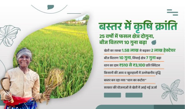 प्रधानमंत्री किसान सम्मान निधि योजना जैसी योजनाओं ने बस्तर के किसानों को नई दिशा दी है। कृषि विभाग अब मिलेट्स, दलहन और तिलहन फसलों को बढ़ावा देने के साथ-साथ जैविक खेती पर भी जोर दे रहा है। पिछले 25 वर्षों में बस्तर का यह परिवर्तन केवल कृषि का विकास नहीं, बल्कि ग्रामीण अर्थव्यवस्था के पुनर्जागरण की कहानी है। मुख्यमंत्री श्री विष्णुदेव साय के नेतृत्व में राज्य सरकार ने किसानों के कल्याण को सर्वाेच्च प्राथमिकता दी है। कृषि, जल संसाधन और सहकारिता विभागों के समन्वित प्रयासों से आज बस्तर आत्मनिर्भर, समृद्ध और हरित हो रहा है।