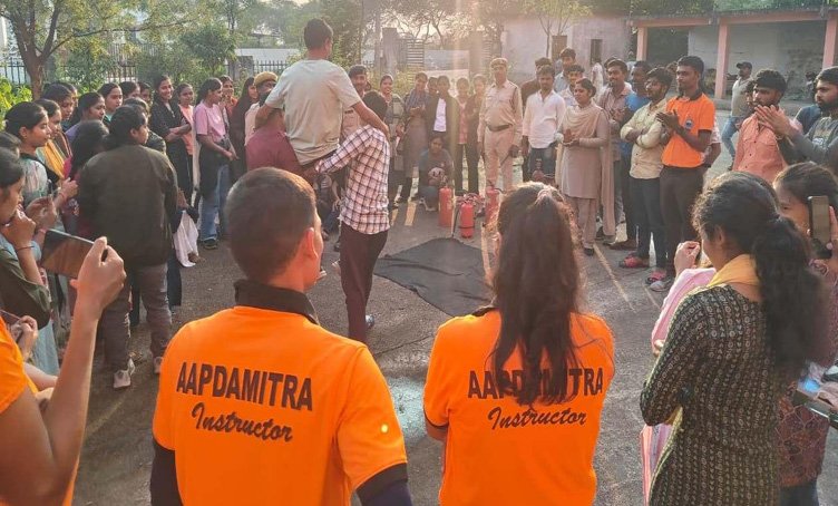 राजनांदगांव। राष्ट्रीय आपदा प्रबंधन प्राधिकरण तथा राजस्व एवं आपदा प्रबंधन विभाग के निर्देशानुसार कलेक्टर श्री जितेन्द्र यादव के मार्गदर्शन में 800 युवा आपदा मित्रों का प्रशिक्षण दिया जाएगा। प्रथम चरण में युवा आपदा मित्र योजना के तहत क्षेत्रीय पंचायत एवं ग्रामीण विकास प्रशिक्षण केन्द्र बरगा में 80 युवा आपदा मित्रों को प्रशिक्षण दिया जा रहा है। प्रशिक्षण के चौथे दिन मुख्य चिकित्सा एवं स्वास्थ्य अधिकारी, जिला सेनानी नगर सेना, आपदा मित्र मास्टर ट्रेनर्स द्वारा बीएलएस एण्ड सीपीआर डेमो एवं प्रेक्टिल तथा फायर सेफ्टी से संबंधित प्रशिक्षण दिया गया।
