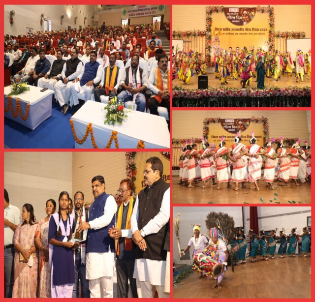 उन्होंने कार्यक्रम में उपस्थित जनजातीय कलाकारों, समाज प्रमुखों, वरिष्ठजन और प्रतिभावान विद्यार्थियों को सम्मानित भी किया। इस अवसर पर महापौर श्री जीवर्धन चौहान ने भी कार्यक्रम को संबोधित किया।