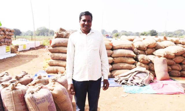 राजनांदगांव। जिले में धान खरीदी का कार्य सुचारू तरीके से चल रहा है। अन्नदाता किसानों का धान समर्थन मूल्य एवं कृषक उन्नति योजना के तहत 3100 रूपए प्रति क्विंटल की दर और प्रति एकड़ 21 क्विंटल के मान से धान खरीदी होने से किसानों में हर्ष व्याप्त है। जिला प्रशासन द्वारा जिले के धान उपार्जन केन्द्रों में धान खरीदी के लिए चाक-चौबंद व्यवस्था की गई है। ग्राम गोडरी के किसान श्री राजू लाल साहू आज धान उपार्जन केन्द्र अर्जुनी में धान बिक्री के लिए आए थे। उन्होंने बताया कि उनके पास 17 एकड़ भूमि है। आज वे 88.80 क्विंटल धान बिक्री के लिए लेकर आए है। टोकन तुंहर हाथ मोबाईल एप से ऑनलाईन टोकन होने से उनको बहुत सुविधा हुई है। उन्होंने कहा कि एक एकड़ में सब्जी की खेती भी कर रहे है। उन्होंने बताया कि शासन द्वारा स्प्रिंकलर के लिए अनुदान भी मिला है। विगत वर्ष धान की बिक्री से बहुत फायदा हुआ और उन्होंने एक नया ट्रैक्टर खरीदा है तथा नया घर बना रहे है। किसान श्री राजू लाल साहू ने कहा कि किसानों को उनकी उपज का अच्छा मूल्य मिल रहा है और बचत भी हो रही है। इसके लिए उन्होंने मुख्यमंत्री श्री विष्णु देव साय को शुक्रिया कहा।