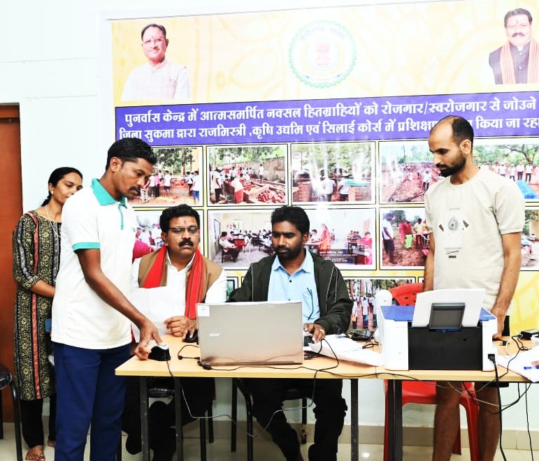 उल्लेखनीय है कि सुकमा के पुनर्वास केंद्र में प्रशिक्षण पाठ्यक्रम में पुनर्वासित युवाओं को राज मिस्त्री, कृषि उद्यमी, सिलाई का प्रशिक्षण दिया जा रहा है। इसके साथ ही