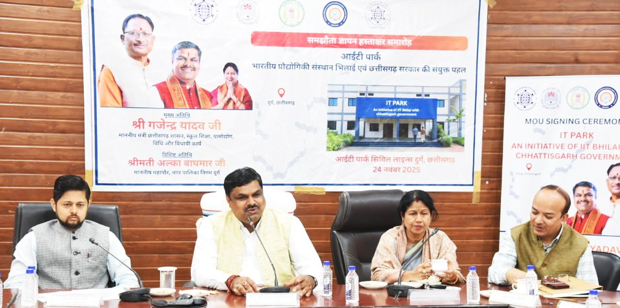दुर्ग: दुर्ग जिला अब आईटी और टेक्नोलॉजी सेक्टर में एक नए युग की शुरुआत करने जा रहा है। जिले के पहले आईटी पार्क की स्थापना हेतु आज आईआईटी भिलाई और छत्तीसगढ़ सरकार के बीच महत्वपूर्ण समझौता ज्ञापन (डवन्) पर हस्ताक्षर किए गए। यह आईटी पार्क सिविल लाइंस क्षेत्र में 3 हजार 900 वर्ग मीटर भूमि पर विकसित किया गया है, जिसमें 2,907.26 वर्ग मीटर निर्मित क्षेत्र शामिल है। कार्यक्रम में स्कूल शिक्षा मंत्री श्री गजेन्द्र यादव, महापौर श्रीमती अलका बाघमार, नगर निगम, आईआईटी भिलाई और जिला प्रशासन के वरिष्ठ अधिकारी उपस्थित रहे।
