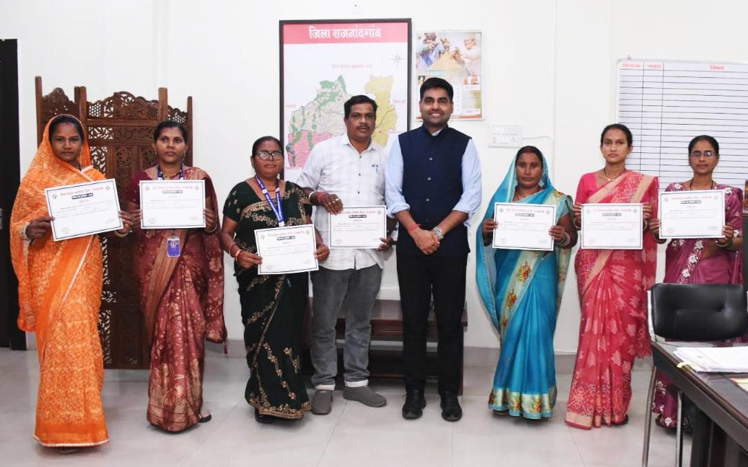 इसी तरह कलेक्टर श्री यादव ने विशेष गहन पुनरीक्षण 2026 के तहत फार्म डिजिटाइजेशन कार्य में राजनांदगांव विधानसभा के मतदान केन्द्र क्रमांक 221 ईरा के बीएलओ श्रीमती विद्या साहू ने 99.63 प्रतिशत, मतदान केन्द्र क्रमांक 194 ठाकुरटोला के बीएलओ श्रीमती लकेश्वरी चंदाने ने 93.62 प्रतिशत, मतदान केन्द्र क्रमांक 208 बिरेझर के बीएलओ श्रीमती अमरिका ठाकुर ने 93.47 प्रतिशत, खुज्जी विधानसभा के मतदान केन्द्र क्रमांक 214 कन्हारपुरी के बीएलओ श्रीमती गिरजा लेझांरे ने 95.57 प्रतिशत तथा डोंगरगढ़ विधानसभा के मतदान केन्द्र क्रमांक 241 डंगनिया की श्रीमती राजकुमारी साहू ने 95.55 प्रतिशत और मतदान केन्द्र क्रमांक 195 बसंतपुर की पुष्पा बाई ने 92.57 प्रतिशत सर्वाधिक फॉर्म डिजिटलाइजेशन करने की उपलब्धि प्राप्त करने पर प्रशस्ति पत्र देकर सम्मानित किया।