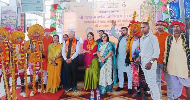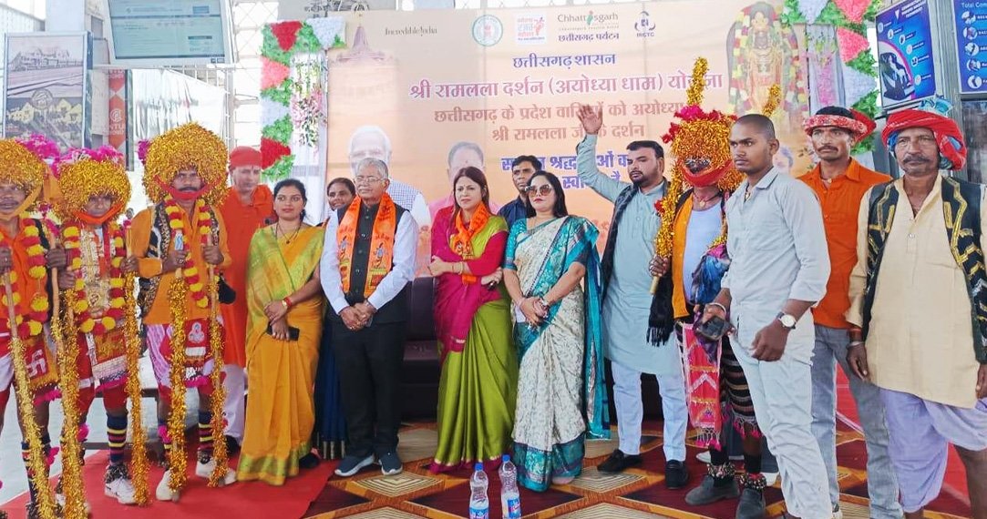 रायपुर: राज्य सरकार की रामलला दर्शन योजना के तहत आज बिलासपुर रेलवे स्टेशन से भारत गौरव स्पेशल ट्रेन बिलासपुर संभाग के समस्त जिलों के 850 तीर्थयात्रियों को लेकर अयोध्या धाम के लिए रवाना हुई। इस यात्रा के दौरान यात्रियों को वाराणसी में काशी विश्वनाथ जी के दर्शन का लाभ भी मिलेगा। भारत गौरव स्पेशल ट्रेन को बिल्हा विधायक श्री धरमलाल कौशिक, बेलतरा विधायक श्री सुशांत शुक्ला, महापौर बिलासपुर श्रीमती पूजा विधानी एवं सुश्री हर्षिता पांडे ने हरी झंडी दिखाकर रवाना किया। स्पेशल ट्रेन के रवाना होने के पूर्व अतिथियों ने तीर्थयात्रियों का फूलमालाओं से स्वागत व अभिनंदन किया।