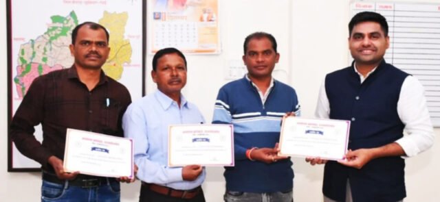 राजनांदगांव। कलेक्टर श्री जितेन्द्र यादव ने आज कलेक्टोरेट सभाकक्ष में खरीफ विपणन वर्ष 2025-26 अंतर्गत रकबा समर्पण में उत्कृष्ट कार्य के लिए समिति प्रबंधकों को प्रशस्ति पत्र प्रदान कर सम्मानित किया। कलेक्टर ने धान उपार्जन केन्द्र कुहीकला के समिति प्रबंधक श्री हरनारायण रामटेके, धान उपार्जन केन्द्र जोशीलमती के समिति प्रबंधक श्री गणपतराम सिन्हा एवं धान उपार्जन केन्द्र गहिराभेडी के समिति प्रबंधक श्री बसंत कुमार साहू को प्रशस्ति पत्र प्रदान कर सम्मानित किया। कलेक्टर ने जिले के अन्य धान खरीदी केन्द्र प्रभारियों को रकबा समर्पण कार्य में प्रगति लाने के निर्देश दिए है। कलेक्टर श्री जितेन्द्र यादव के मार्गदर्शन में खरीफ विपणन वर्ष 2025-26 अंतर्गत धान खरीदी का कार्य प्रगति पर है। जिले में अब तक कुल 20167 किसानों द्वारा 103860 मीट्रिक टन धान का विक्रय किया गया है। जिसमें से 4236 किसानों द्वारा 333.602 हेक्टेयर रकबा समर्पण किया गया है।