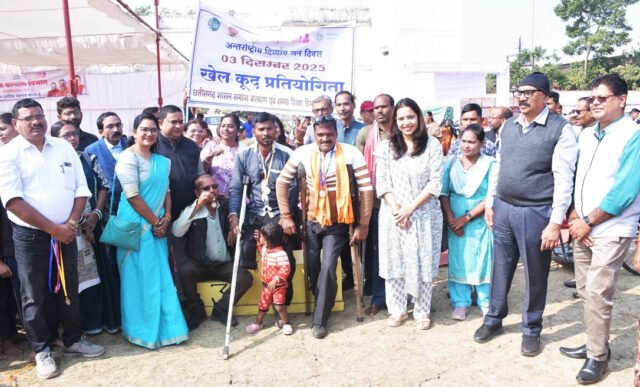 राजनांदगांव। अंतर्राष्ट्रीय दिव्यांगजन दिवस के अवसर पर सर्वेश्वर दास नगर पालिक निगम स्कूल मैदान एवं गांधी सभागृह राजनांदगांव में जिला स्तरीय कार्यक्रम आयोजित किया गया। कलेक्टर श्री जितेन्द्र यादव के मार्गदर्शन में अंतर्राष्ट्रीय दिव्यांगजन दिवस के अवसर दिव्यांगजनों के लिए खेलकूद एवं सांस्कृतिक प्रतियोगिता का आयोजन किया गया। सीईओ जिला पंचायत सुश्री सुरूचि सिंह ने हरी झंडी दिखाकर खेलकूद प्रतियोगिता का शुभारंभ किया। जिसमें 500 से अधिक बालक-बालिकाएं व युवा दिव्यांगजन शामिल हुए। दिव्यांगजनों ने अपनी प्रतिभा का प्रदर्शन किया। जिले के विभिन्न विकासखण्डों से आये हुए स्कूली दिव्यांग बच्चे एवं शासकीय समर्थ स्कूल, स्वैच्छक अनुदानित संस्था अभिलाषा, आस्था, मनोकामना के बच्चों द्वारा सांस्कृतिक कार्यक्रमों की मोहक प्रस्तुति दी गई। आस्था श्रवण बाधित संस्था के द्वारा खाटू-श्याम शानदार नृत्य व शंशाक गांधी के भजनों की सुमधुर प्रस्तुति ने उपस्थित सभी दर्शको का दिल जीत लिया। विजयी प्रतिभागियों को स्मृति चिन्ह, मेडल भेंट कर सम्मानित किया गया। साथ ही आयोजन में शामिल सभी दिव्यांगजनों को दैनिक उपयोगी सामग्री भेंट कर सम्मानित किया गया। समाज कल्याण विभाग द्वारा दिव्यांगजनों को व्हीलचेयर, मोटराईज्ड ट्रायसायकल, ट्रायसायकल, बैशाखी, श्रवण यंत्र, वॉकर साथ ही समग्र शिक्षा द्वारा दिव्यांग बच्चों को शैक्षणिक सहायक सामग्री प्रदान की गई।