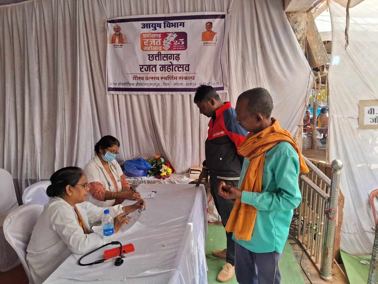 मोहला। संचालनालय आयुष रायपुर (छत्तीसगढ़) के निर्देशन और जिला आयुष अधिकारी डॉ. राजेश झारिया तथा डॉ. शिल्पा मिश्रा के संयुक्त मार्गदर्शन में मानपुर में एक दिवसीय विकासखंड स्तरीय नि:शुल्क आयुष स्वास्थ्य मेला आयोजित किया गया। मेले में बड़ी संख्या में ग्रामीणों ने पहुंचकर आयुर्वेद व होम्योपैथी पद्धति से उपचार कराया।