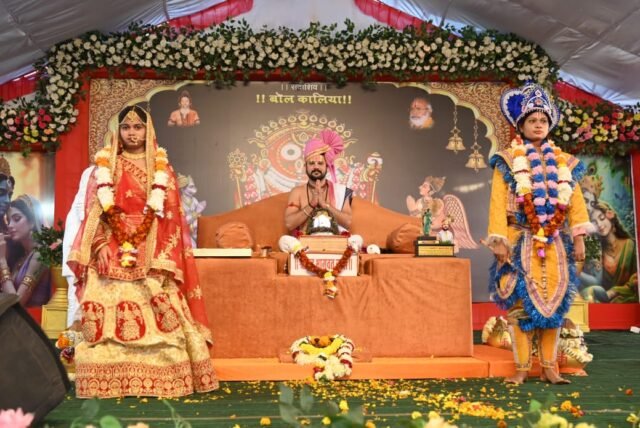 पं. युवराज पांडे ने अपने प्रवचन में भगवान श्रीकृष्ण की जीवन लीला का भावपूर्ण वर्णन किया। उन्होंने विशेष रूप से श्रीकृष्ण के जन्म, गोकुल पहुंचने और कंस के कारागार में प्रवेश करने की कथा को श्रद्धालुओं के बीच प्रस्तुत किया। इसके साथ ही तृणावर्त, शकटासुर, अघासुर, बकासुर जैसे असुरों के वध की कथाओं को भी विस्तार से बताया। उन्होंने रुक्मणी विवाह के प्रसंग को भक्त और भगवान के मिलन का प्रतीक बताते हुए इस विवाह के महत्व को समझाया।