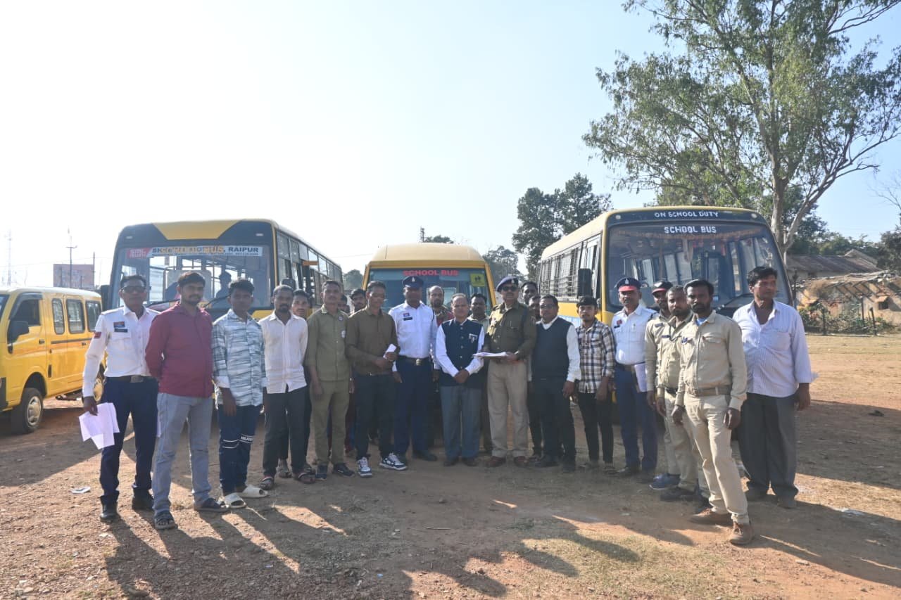 मोहला-मानपुर-अम्बागढ़ चौकी। राष्ट्रीय सड़क सुरक्षा माह 2026 के तहत 7वें दिन यातायात पुलिस ने जिले के स्कूल बसों की व्यापक चेकिंग की। इस दौरान सुप्रीम कोर्ट की गाइडलाइंस का पालन करते हुए कुल 10 स्कूल बसों की जांच की गई और बस चालकों को यातायात नियमों की कड़ी समझाइश दी गई।
