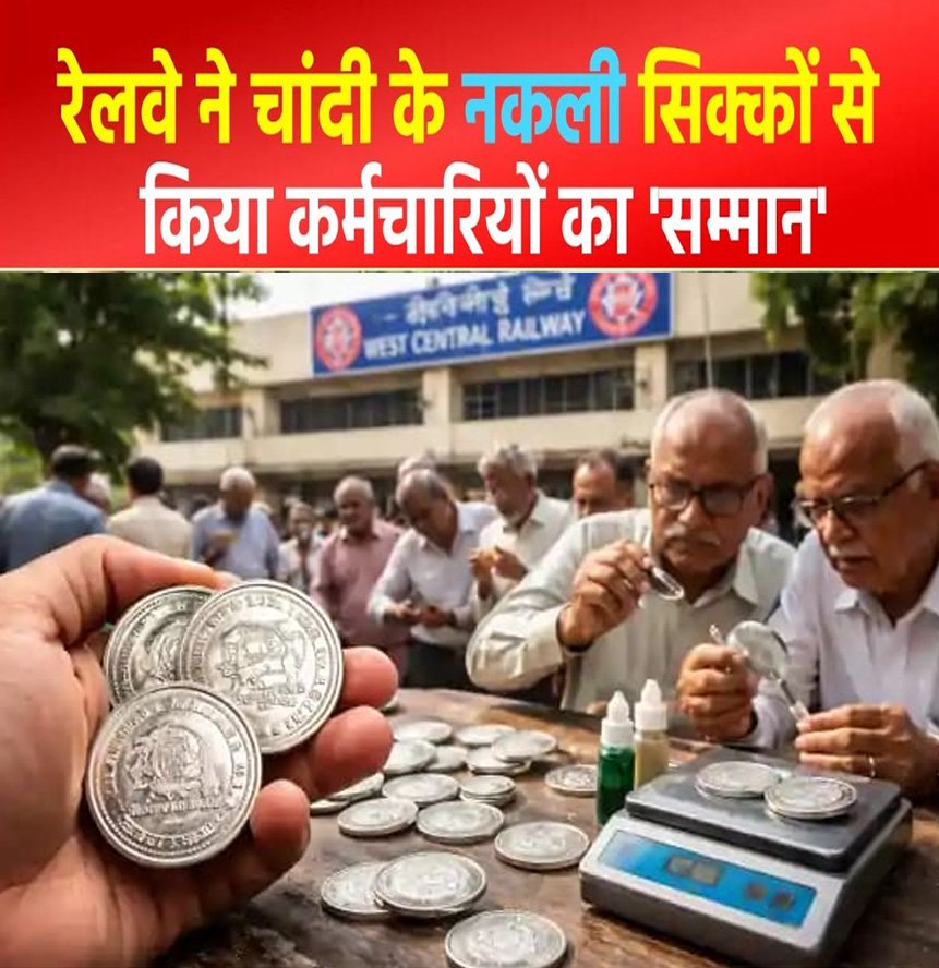 पश्चिम मध्य रेलवे (WCR) में रिटायर्ड कर्मचारियों को चांदी के बजाय नकली तांबे के सिक्के बांटे जाने का बड़ा खुलासा हुआ ह. लगभग 3600 सिक्कों में डिफेक्ट पाए गए, जिनकी NABL लैब जांच में सप्लायर कंपनी दोषी पाई गई है.