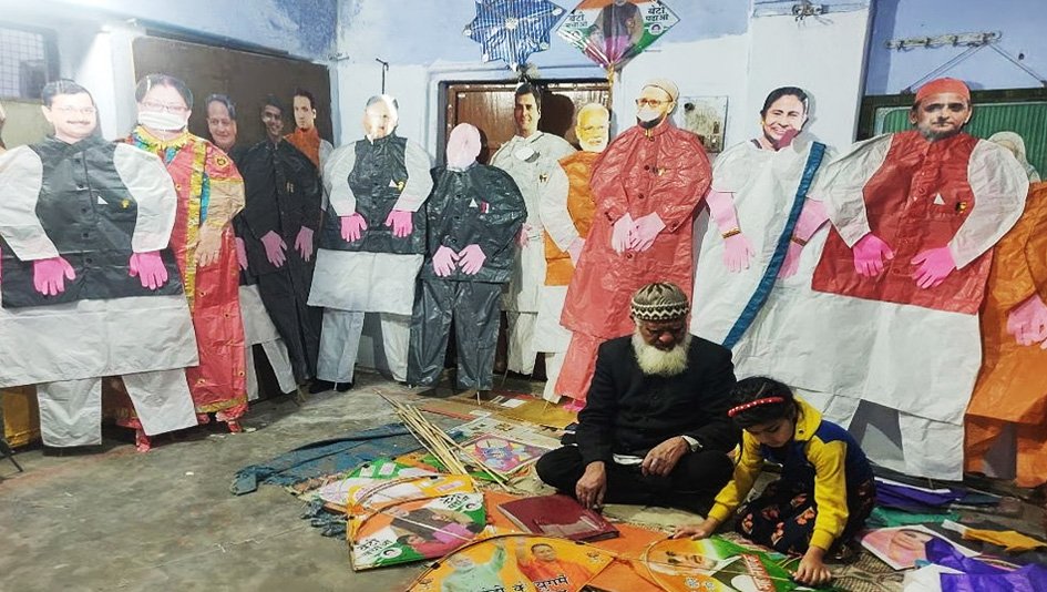 कारखाने में तैयार हैं कई नेताओं की पतंगे