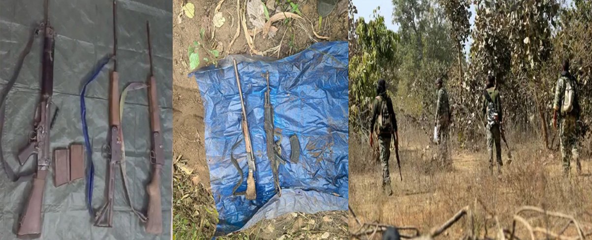 बरामद हथियारों के डंप में- एक एस एल आर 7.62 एमएम ऑटोमेटिक राइफल जो सिलिंग सहित है, एसएलआर की दो खाली मैगजीन, एक 12 बोर बंदूक सिलिंग सहित, एक भरमार बंदूक सहित नक्सली सामग्री शामिल है.