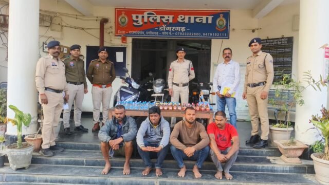 डोंगरगढ़। राजनांदगांव पुलिस अधीक्षक सुश्री अंकिता शर्मा के दिशा-निर्देश और अतिरिक्त पुलिस अधीक्षक श्री पुष्पेन्द्र नायक के मार्गदर्शन में डोंगरगढ़ पुलिस ने अवैध शराब बिक्री एवं परिवहन के खिलाफ सघन अभियान चलाया। इस कार्रवाई में कुल 4 आरोपी गिरफ्तार किए गए और 18.180 बल्क लीटर देशी शराब जप्त की गई।