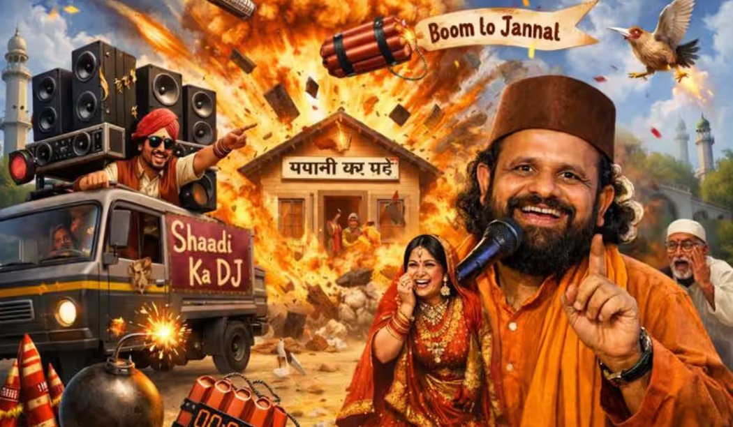 उन्होंने जवाब देते हुए कहा कि, ‘तुम बेटे बाप से पैसा ले लेकर पटाखा फोड़ते हो. अफसोस लगता है, अगर पटाखा फोड़ना जायज होता तो हम लोग मना नहीं करते. शादी के दिन हम लोग खुद पटाखा का झोला लेकर गाड़ी में बैठते. आप लोग पब्लिक हैं, दस टक्वा फोड़ते, हम लोग मौलवी मौलाना, हम लोग बम फोड़ देते. आपके पटाखा में दस नेकी, मेरे बम में सौ नेकी. आप यहां वहां फोड़ते हैं, हम सीधे समधी घर में फेंक देते हैं. यहां तक की डायनामाइट ले जाते, जब सवाब है फोड़ने में तो एकदम चारों कोना हम डायनामाइट समधी का घ उड़ा देते, सीधे जन्नत घुस जाते. अगर डीजे बजाने में सवाब होता तो डीजे गाड़ी में क्यों बांध के ले जाते? समधी के पीठ में बांध देते, डबल सवाब होता. समधी धीरे धीरे चलो ढीस ढास डूस, पूरा कुटुंब खुश. चलो जन्नत घुस, ए तौबा तौबा!’