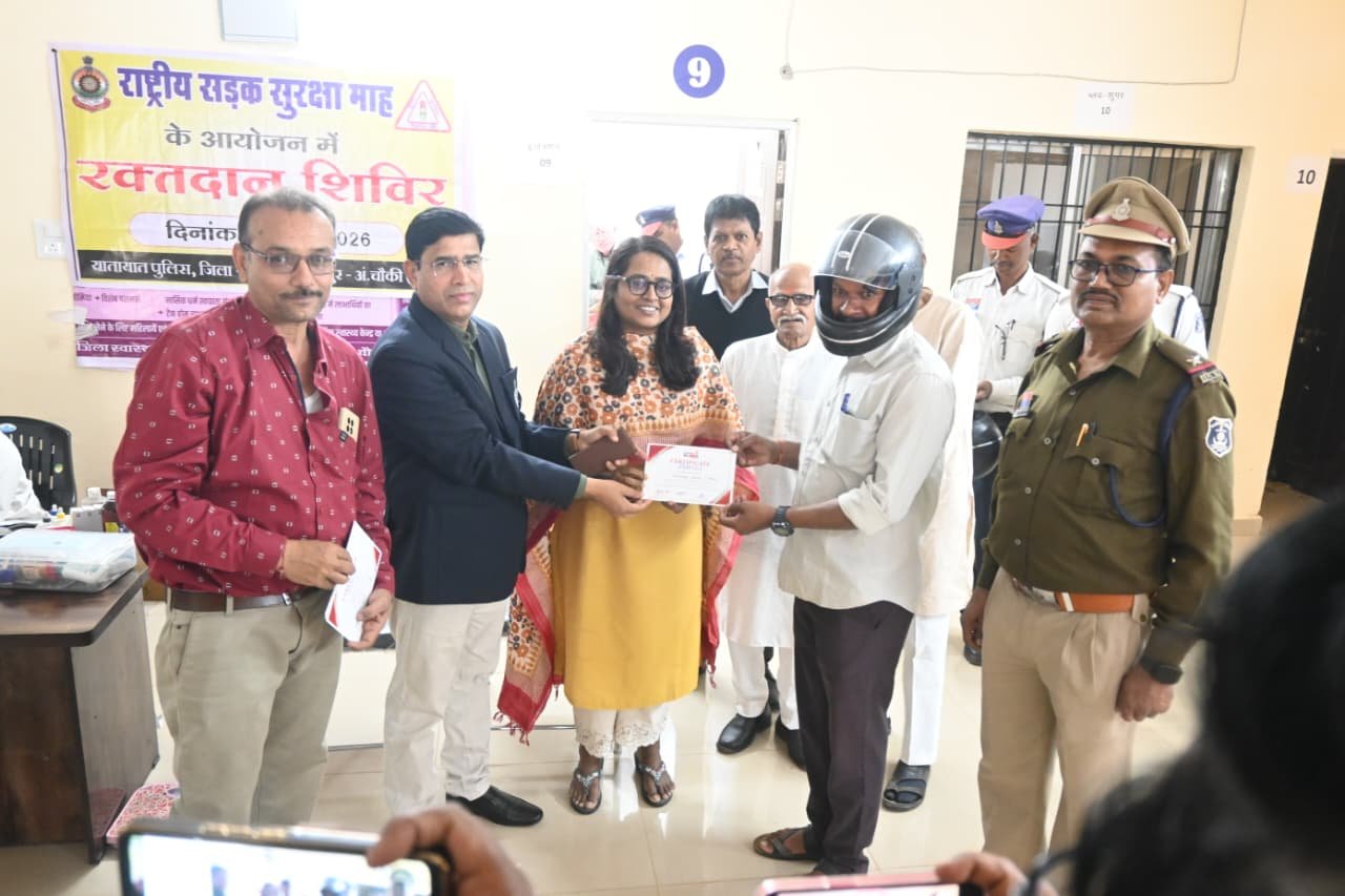 मोहला। राष्ट्रीय सड़क सुरक्षा माह 2026 के 22वें दिन मोहला में जिला अस्पताल में यातायात पुलिस के द्वारा रक्तदान शिविर का सफल आयोजन किया गया। शिविर में कुल 105 लोगों का स्वास्थ्य परीक्षण किया गया और 72 यूनिट रक्त का स्वैच्छिक दान प्राप्त हुआ।