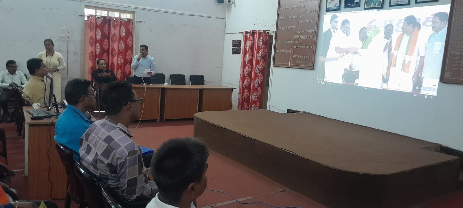 राजनांदगांव। नेता जी सुभाषचंद बोस जी के जयंती के अवसर पर 23 जनवरी 2026 को तिरूवनंतपुरम (केरल) में राष्ट्रीय स्तर पर विशेष कार्यक्रम आयोजित किया गया। कार्यक्रम मंे माननीय प्रधानमंत्री श्री नरेन्द्र मोदी जी प्रधानमंत्री स्ट्रीट वेंडर, आत्मनिर्भर निधि (पीएम स्व निधि योजना) अंतर्गत हितग्राहियो को ऋण वितरण किए। साथ ही रूपे क्रेडिट कार्ड योजना का शुभारंभ भी किए। उक्त कार्यक्रम का महापौर श्री मधुसूदन यादव के नेतृत्व में नगर निगम सभागृह में सीधा प्रसारण किया गया। इस अवसर पर निगम अध्यक्ष श्री टोपेन्द्र सिंह पारस वर्मा सहित आयुक्त श्री अतुल विश्वकर्मा, सामान्य प्रशासन विभाग के प्रभारी सदस्य श्री राजेश जैन रानू, पार्षद श्री कमलेश बंधे, श्री सतीष साहू पार्षद प्रतिनिधि श्री नादान सेन व श्री ओम प्रकाश सिन्हा, कार्यपालन अभियंता श्री दीपक खाण्डे, राजस्व अधिकारी श्री राजेश तिवारी,लीड बैक के मैनेजर श्री मनीष शर्मा विशेष रूप से उपस्थित थे।