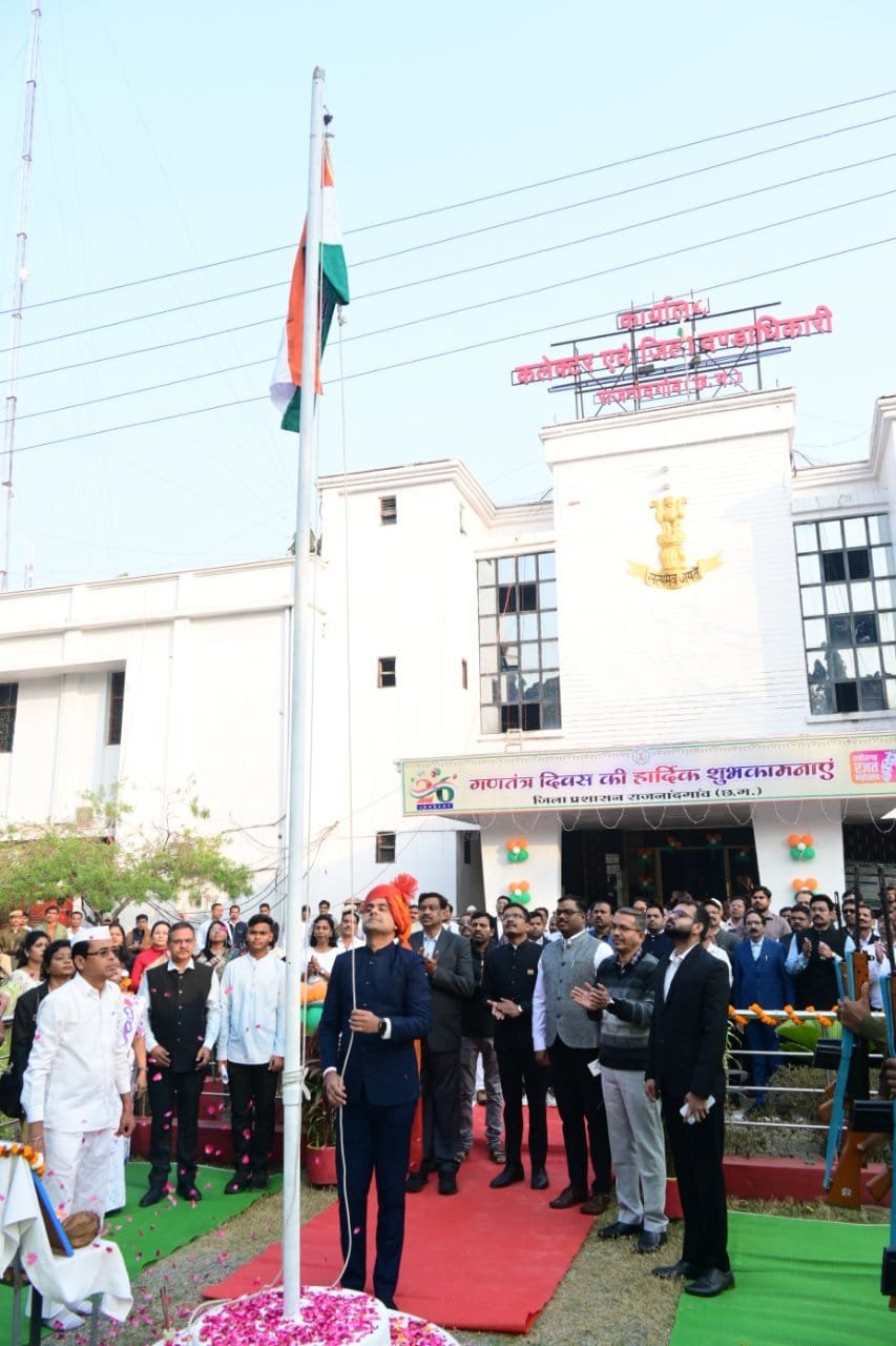 राजनांदगांव। कलेक्टर श्री जितेन्द्र यादव ने गणतंत्र दिवस के अवसर पर कलेक्टोरेट परिसर में राष्ट्रीय ध्वज फहराया। इस मौके पर सामूहिक रूप से राष्ट्रगान किया गया। कलेक्टर श्री यादव ने इस अवसर पर छत्तीसगढ़ महतारी की प्रतिमा पर माल्यार्पण किया और राष्ट्रपिता महात्मा गांधी तथा संविधान निर्माता बाबा साहेब भीमराव अंबेडकर की प्रतिमाओं पर पुष्प अर्पित कर उन्हें श्रद्धांजलि दी।