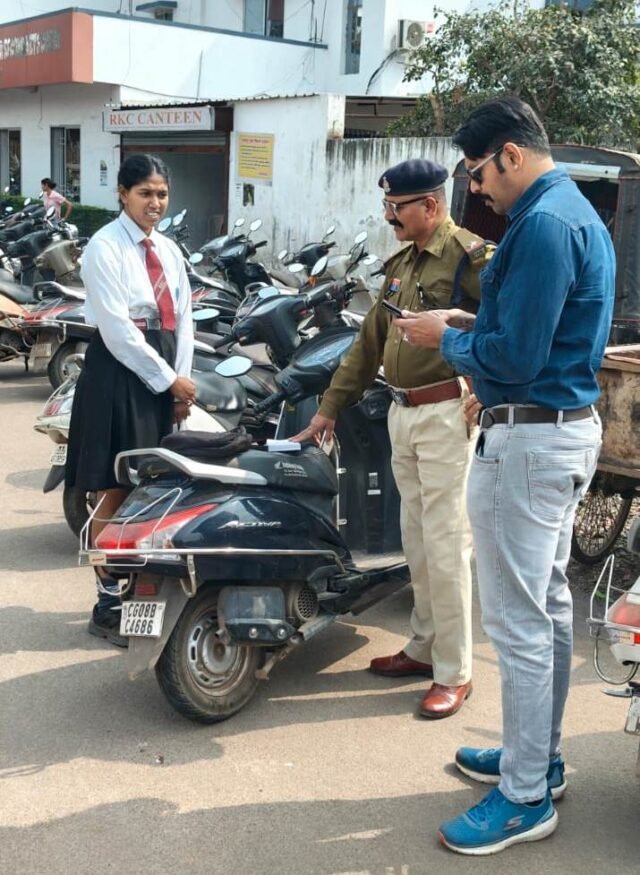 राजनांदगांव। सड़क सुरक्षा माह के अंतर्गत परिवहन विभाग और यातायात पुलिस द्वारा संयुक्त रूप से रॉयल किड्स कॉन्वेंट स्कूल के पास जांच एवं जागरूकता अभियान चलाया गया। इस दौरान यातायात नियमों का उल्लंघन करने वाले छात्रों से उनके पालकों से फोन पर संवाद किया गया, ताकि सड़क सुरक्षा के महत्व के बारे में उन्हें समझाया जा सके।