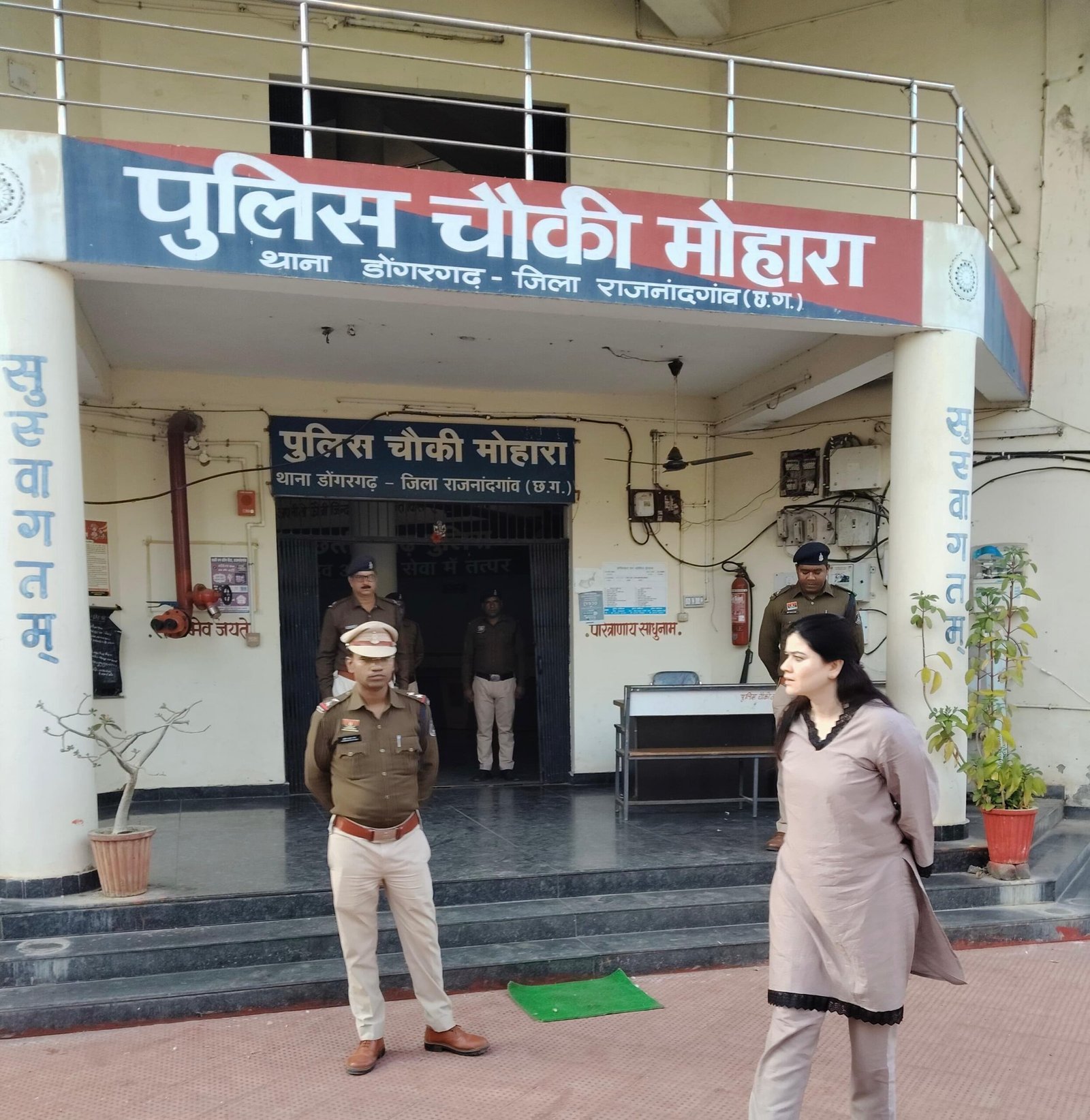 राजनांदगांव। पुलिस अधीक्षक सुश्री अंकिता शर्मा ने आज दिनांक 09.02.2026 को पुलिस चौकी मोहारा का औचक निरीक्षण किया। इस निरीक्षण के दौरान उन्होंने चौकी की संपूर्ण कार्यप्रणाली, अभिलेख संधारण और अनुशासनात्मक व्यवस्था का गहन अवलोकन किया।