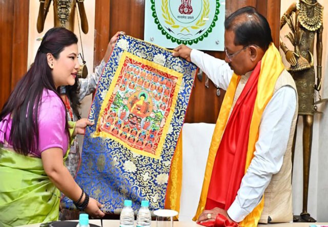 मुख्यमंत्री को भेंट किया सिक्किम का स्मृति चिन्ह ‘थांका’
