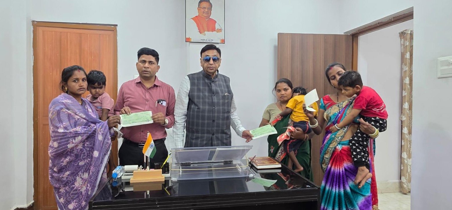 विधायक प्रतिनिधि संतोष अग्रवाल के द्वारा स्पीकर हाऊस, राजनांदगांव मे चेक वितरण किया गया।