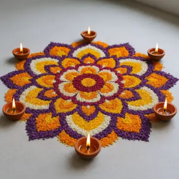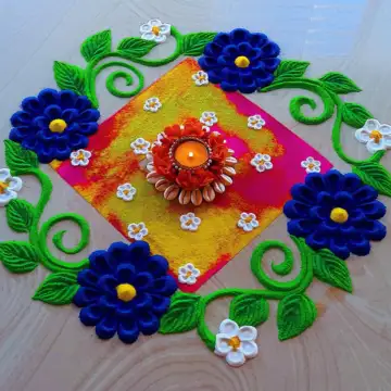 अगर आप रंगोली बनाने में एक्सपर्ट हैं तो ये डिजाइन भी कॉपी कर सकती हैं. इसके लिए आपको एक स्क्वायर शेप बनानी है. इसके आसपास फूल और पत्तियों का डिजाइन दिया गया है. बीच में एक फूल बनाया है और उस पर दीया जलाकर रखा है, जो काफी अच्छा लग रहा है.