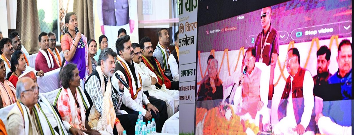 जगदलपुर के वीर सावरकर भवन में आयोजित आदान सहायता राशि वितरण कार्यक्रम के दौरान बिलासपुर जिले से वर्चुअल तौर पर जुड़े मुख्यमंत्री श्री विष्णु देव साय ने बस्तर जिले के मुंडापाल की महिला कृषक बसंती कश्यप से रूबरू होकर उन्हें समर्थन मूल्य पर धान खरीदी की प्रोत्साहन राशि मिलने की बधाई देते हुए उक्त राशि के उपयोग के बारे में पूछा।
