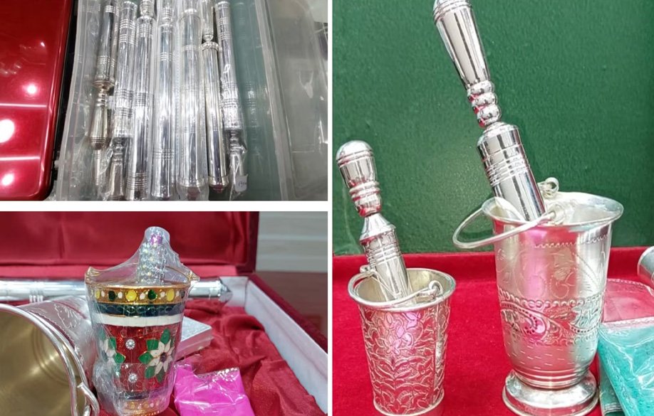 ज्वेलर्स की दुकानों पर चांदी की पिचकारी और बाल्टी बड़े ही सुंदर डिजाइन में तैयार की जा रही हैं। कुछ लोग इन्हें सोने में भी बनवा रहे हैं। खास बात यह है कि देने वाले और पाने वाले का नाम भी लिखवाया जा रहा है ताकि यह पहली होली की याद के रूप में हमेशा संभालकर रखी जा सके। कीमत की बात करें तो ये सामान लगभग 10,000 रुपये से शुरू होकर एक लाख रुपये तक जा रहा है। दुकानों में हर बजट के हिसाब से छोटा-बड़ा पीस उपलब्ध है।
