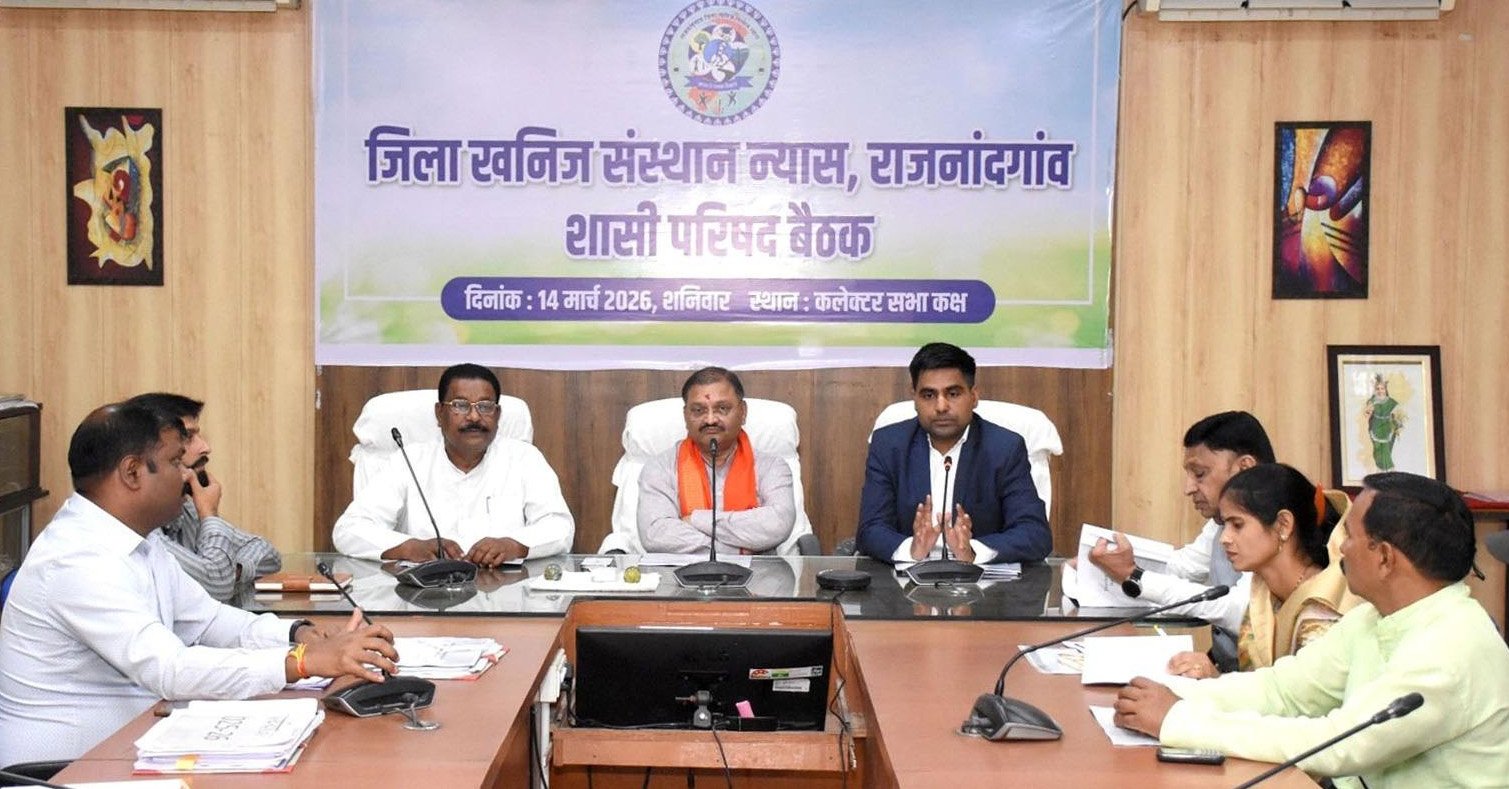 राजनांदगांव: कलेक्टर श्री जितेन्द्र यादव की अध्यक्षता में आज कलेक्टोरेट सभाकक्ष में जिला खनिज संस्थान न्यास शासी परिषद की बैठक आयोजित की गई। इस अवसर पर सांसद श्री संतोष पाण्डेय, खुज्जी विधायक श्री भोलाराम साहू, जिला पंचायत अध्यक्ष श्रीमती किरण वैष्णव, विधायक प्रतिनिधि श्री संतोष अग्रवाल एवं वनमंडलाधिकारी श्री आयुष जैन उपस्थित थे।