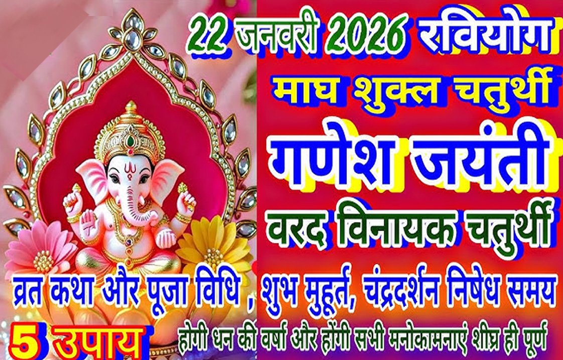 चैत्र माह के शुक्ल पक्ष की चतुर्थी तिथि 21 मार्च 2026 को रात 11.56 पर शुरू होगी और अगले दिन 22 मार्च 2026 को रात 9.16 पर समाप्त होगी. इस दिन भगवान गणेश के वासुदेव रूप की पूजा-अर्चना की जाती है.