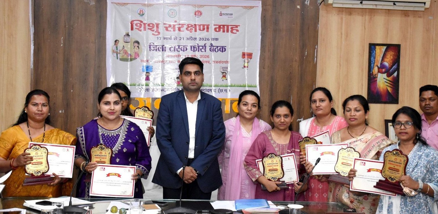 राजनांदगांव: कलेक्टर श्री जितेन्द्र यादव ने आज कलेक्टोरेट सभाकक्ष में प्रधानमंत्री मातृ वंदना योजना अंतर्गत जिले में निर्धारित लक्ष्य से अधिक गर्भवती एवं धात्री महिलाओं का पंजीयन होने पर जिले की सात परियोजनाओं से उत्कृष्ट कार्य के लिए चयनित पर्यवेक्षकों को प्रतीक चिन्ह एवं प्रशस्ति पत्र प्रदान कर सम्मानित किया। कलेक्टर ने राजनांदगांव शहरी परियोजना के चिखली सेक्टर से श्रीमती पार्वती साहू, राजनांदगांव ग्रामीण-1 के सुरगी सेक्टर से श्रीमती दुर्गा जादौन, राजनांदगांव ग्रामीण-2 के घुमका सेक्टर से सुश्री दिशा शिंदे, डोंगरगांव के आरी सेक्टर से श्रीमती बेबी गीतांजली दीवान, डोंगरगढ़ के मेढ़ा सेक्टर से श्रीमती संतोषी राजपूत, छुरिया-1 के रंगीटोला सेक्टर से सुश्री सौम्या चौबे, छुरिया-2 के कुमर्दा सेक्टर से सुश्री वीना यादव को प्रशस्ति पत्र प्रदान कर सम्मानित किया।