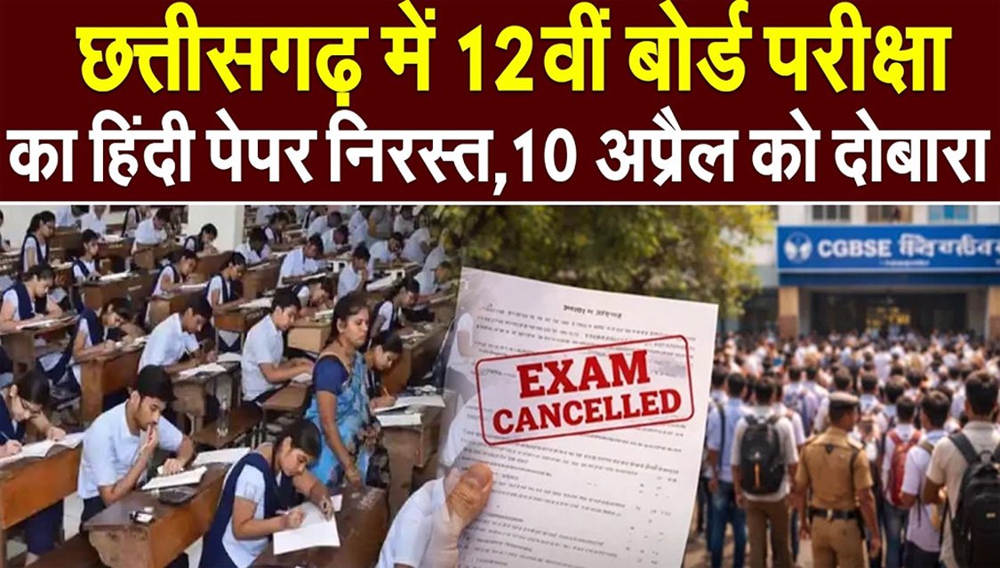 राजनांदगांव: छत्तीससगढ़ माध्यमिक शिक्षा मंडल द्वारा 14 मार्च 2026 को आयोजित कक्षा 12वीं हिन्दी विषय की परीक्षा को निरस्त कर दिया गया है। मंडल के निर्देशानुसार हायर सेकेण्डरी मुख्य परीक्षा वर्ष 2026 के हिन्दी विषय की परीक्षा 10 अप्रैल 2026 को सुबह 9 बजे से 12.15 बजे तक पुन: आयोजित की जाएगी। इस संबंध में विस्तृत जानकारी संबंधित विद्यालय से प्राप्त की जा सकती है।