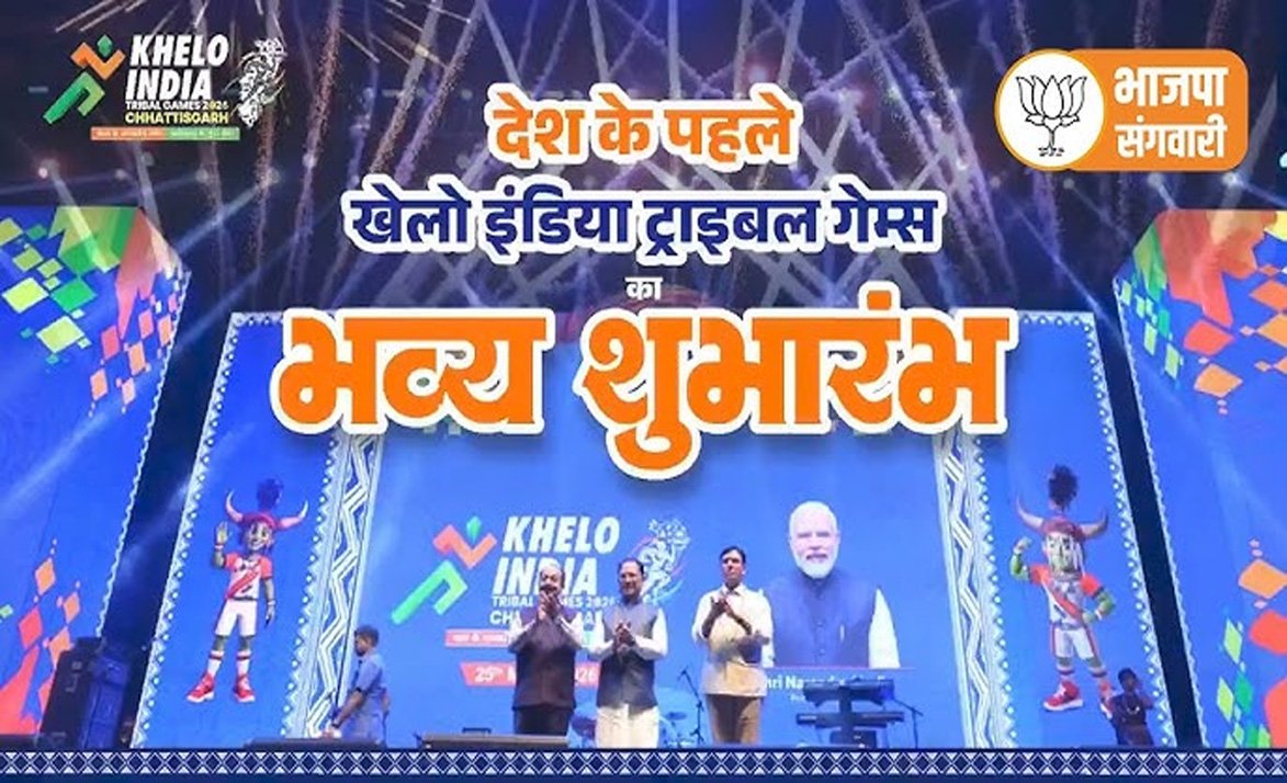 छत्तीसगढ़ की धरती आज एक ऐतिहासिक क्षण की साक्षी बनी, जब राजधानी रायपुर के साइंस कॉलेज ग्राउंड में देश के प्रथम ‘खेलो इंडिया ट्राइबल गेम्स 2026’ का भव्य शुभारंभ हुआ। मुख्यमंत्री श्री विष्णु देव साय ने इस राष्ट्रीय आयोजन की आधिकारिक घोषणा करते हुए स्पष्ट किया कि राज्य सरकार खेल प्रतिभाओं को आगे बढ़ाने और खेल अधोसंरचना को मजबूत करने के लिए पूर्णतः प्रतिबद्ध है। इस गरिमामयी अवसर पर केंद्रीय युवा मामले एवं खेल मंत्री डॉ. मनसुख मांडविया मुख्य अतिथि के रूप में उपस्थित रहे। यह खेल महाकुंभ 25 मार्च से 3 अप्रैल तक रायपुर के साथ-साथ बस्तर और सरगुजा में आयोजित किया जा रहा है, जिसमें देशभर के 30 राज्यों एवं केंद्रशासित प्रदेशों से लगभग 2500 खिलाड़ी 9 खेल विधाओं में अपनी प्रतिभा का प्रदर्शन कर रहे हैं। कार्यक्रम में हॉकी इंडिया के अध्यक्ष श्री दिलीप तिर्की और ओलंपिक पदक विजेता सुश्री साइखोम मीराबाई चानू की गरिमामयी उपस्थिति ने आयोजन को विशेष गौरव प्रदान किया।