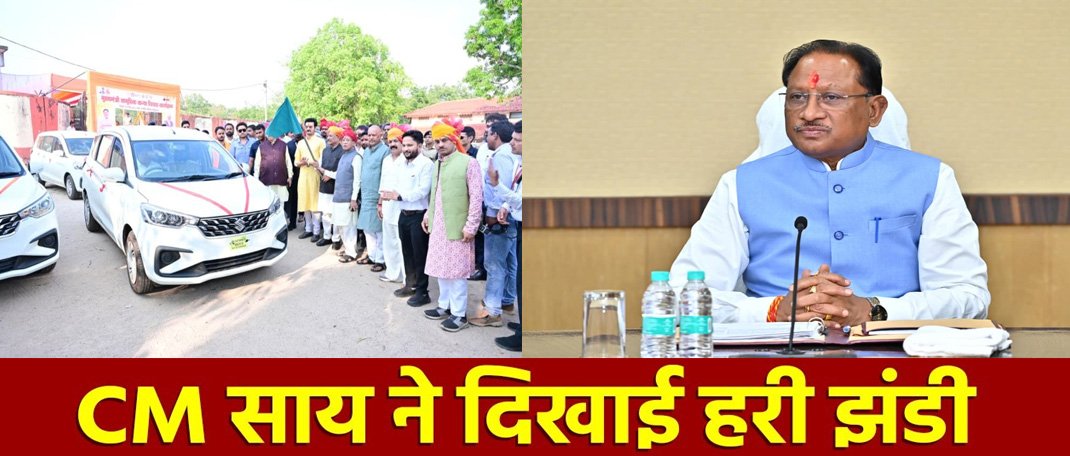 मुख्यमंत्री श्री विष्णु देव साय ने आज जशपुर के रणजीता स्टेडियम में राजस्व विभाग को प्राप्त 4 नवीन शासकीय वाहनों को हरी झंडी दिखाकर रवाना किया।