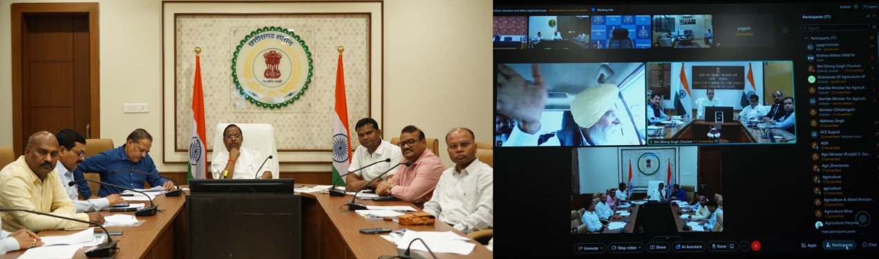 केन्द्रीय कृषि मंत्री श्री शिवराज सिंह चौहान ने आज सभी राज्यों के कृषि मंत्रियों की वर्चुअल बैठक लेकर राज्यों में उर्वरकों की आपूर्ति, अद्यतन स्टॉक एवं वितरण की व्यवस्था के संबंध में जानकारी ली। इस वर्चुअल बैठक में कृषि मंत्री श्री रामविचार नेताम, राज्य के कृषि एवं संबंधित विभागों के वरिष्ठ अधिकारियों के साथ वर्चुअल रूप से शामिल हुए।