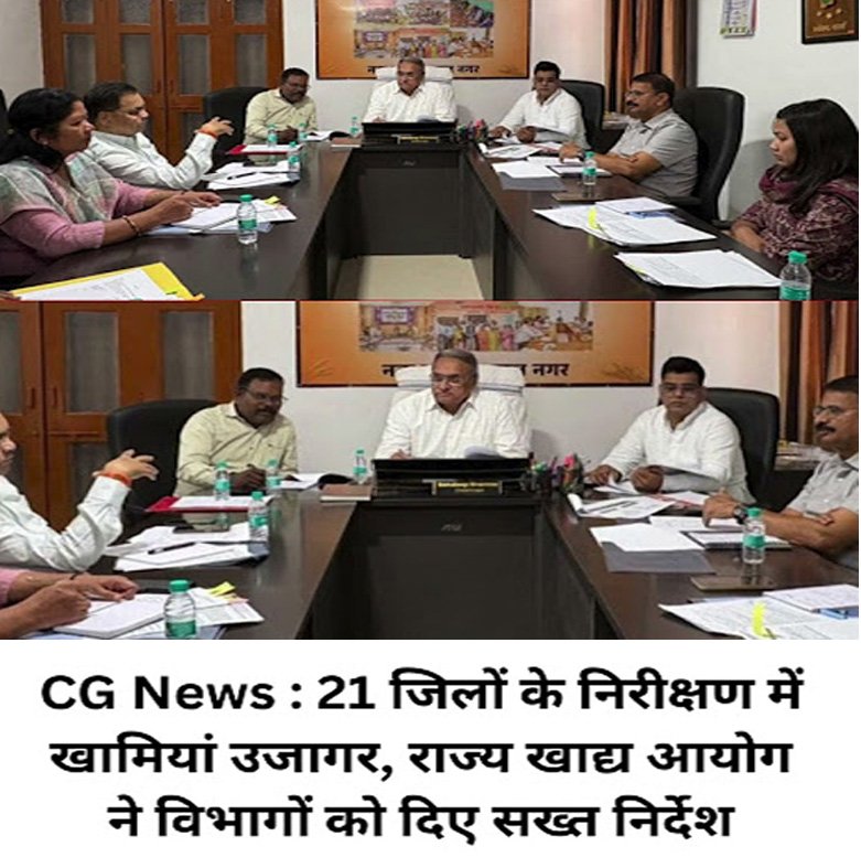 छत्तीसगढ़ राज्य खाद्य आयोग के निरीक्षण में 21 जिलों में संचालित शासकीय योजनाओं के क्रियान्वयन में कई कमियां सामने आई हैं। इन खामियों को लेकर आयोग ने सख्ती दिखाते हुए संबंधित विभागों को त्वरित सुधार के निर्देश दिए हैं। आयोग के अध्यक्ष श्री संदीप शर्मा की अध्यक्षता में नवा रायपुर स्थित कार्यालय में आयोजित अंर्तविभागीय बैठक में खाद्य, महिला एवं बाल विकास, स्कूल शिक्षा और आदिम जाति एवं अनुसूचित जनजाति विभाग के अधिकारियों के साथ समीक्षा की गई। निरीक्षण में उचित मूल्य दुकानों, आंगनबाड़ी केन्द्रों, स्कूलों के मध्यान्ह भोजन और आश्रम-छात्रावासों की व्यवस्था का जायजा लिया गया था।