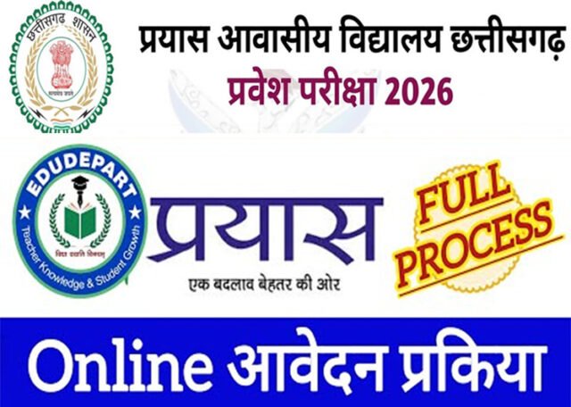 राजनांदगांव: मुख्यमंत्री बाल भविष्य सुरक्षा योजना अंतर्गत प्रदेश में संचालित प्रयास आवासीय विद्यालयों में सत्र 2026-27 के कक्षा 9वीं में प्रवेश हेतु 17 अप्रैल 2026 तक ऑनलाईन आवेदन आमंत्रित की गई है। विद्यार्थियों द्वारा ऑनलाईन भरे गये आवेदन पत्र में त्रुटि सुधार 21 अप्रैल 2026 तक की जा सकती है। जिला स्तर पर दस्तावेजों का परीक्षण 28 अप्रैल 2026 तक किया जाएगा। प्रवेश पत्र 1 मई से डाउनलोड किया जा सकता है। प्रवेश हेतु प्राक्चयन परीक्षा का आयोजन 10 मई 2026 को किया जाएगा। इस संबंध में विस्तृत जानकारी वेबसाईट http://eklavya.cg.nic.in/PRSMS/Student-Admission-Detail एवं कार्यालय सहायक आयुक्त आदिवासी विकास राजनांदगांव से प्राप्त की जा सकती है।