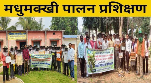 राजनांदगांव: राष्ट्रीय मधुमक्खी बोर्ड अंतर्गत संचालित राष्ट्रीय मधुमक्खी पालन एवं शहद मिशन योजना के तहत ग्रामीण एवं आदिवासी अंचल के कृषकों को आर्थिक रूप से सशक्त बनाने के उद्देश्य से कृषि विज्ञान केन्द्र राजनांदगांव द्वारा 21 मार्च से 27 मार्च तक शासकीय उद्यानिकी रोपणी केतकीटोला अम्बागढ़ चौकी में सात दिवसीय मधुमक्खी पालन प्रशिक्षण कार्यक्रम का आयोजित किया गया। प्रशिक्षण के लिए चयनित 25 कृषकों को मधुमक्खी पालन से संबंधित से जानकारी प्रदर्शन के माध्यम से दी गई।