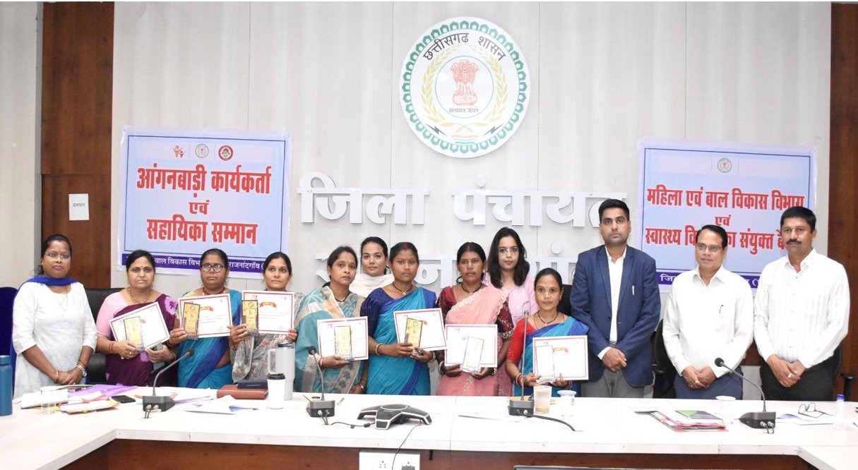 राजनांदगांव” कलेक्टर श्री जितेन्द्र यादव ने आज जिला पंचायत के सभाकक्ष में महिला एवं बाल विकास विभाग, स्वास्थ्य विभाग एवं एनआरएलएम की संयुक्त बैठक ली। कलेक्टर ने गर्भवती महिलाओं एवं बच्चों के स्वास्थ्य एवं पोषण, पो_ लईका पहल अभियान, गर्भवती माताओं का पंजीयन, वैक्सीनेशन सहित सभी योजनाओं की समीक्षा की। कलेक्टर ने कहा कि कुपोषित बच्चों के जीवन में परिवर्तन लाना जिला प्रशासन की सर्वोच्च प्राथमिकता है। कलेक्टर ने जिले में कुपोषण उन्मूलन की दिशा में संवेदनशील पहल करते हुए दो अति गंभीर कुपोषित बच्चों की संपूर्ण देखभाल एवं उपचार की जिम्मेदारी स्वयं ली है। उन्होंने अतिगंभीर कुपोषित बच्चों को एनआरसी में भर्ती कराया जाए तथा उनका नियमित मॉनिटरिंग सुनिश्चित की जाए। कलेक्टर ने कहा कि कुपोषण से बच्चों का शारीरिक एवं मानसिक विकास गंभीर रूप से प्रभावित होता है, इसलिए सभी अधिकारी एवं फील्ड स्टाफ अपने दायित्वों का निर्वहन समयबद्ध और प्रभावी तरीके से करें। उन्होंने प्रत्येक आंगनबाड़ी केंद्र को कुपोषण-मुक्त बनाने हेतु कार्ययोजना बनाकर क्रियान्वयन करने के निर्देश दिए। इसके लिए जनसहभागिता से सुपोषण के प्रति जागरूकता लाने के लिए कहा। कलेक्टर ने उत्कृष्ट कार्य करने वाले आंगनबाड़ी कार्यकर्ता को प्रतीक चिन्ह एवं प्रशस्ति पत्र देकर सम्मानित किया।