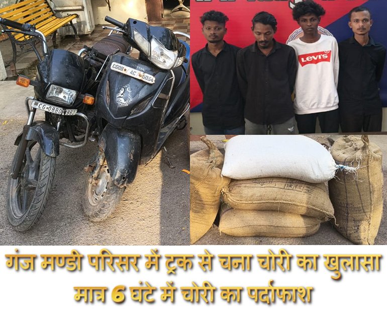 प्रार्थी रौनक जैन, निवासी सदर बाजार राजनांदगांव द्वारा रिपोर्ट दर्ज कराई गई कि दिनांक 05.04.2026 को उनके ट्रक क्रमांक CG 08 AU 5984 में चालक संतोष साहू द्वारा चना लोड कर तिरपाल व रस्सी से बांधकर ट्रक को मंडी परिसर के टीन शेड में खड़ा किया गया था।