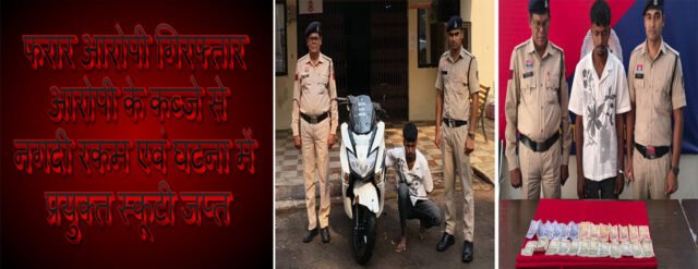 राजनांदगांव पुलिस की कार्यवाही। आरोपी ने अपने अन्य साथियों के साथ मिलकर घटना को दिया था अंजाम। आरोपी के कब्जे से नगदी रकम 8,000/- रुपये एवं घटना में प्रयुक्त स्कूटी जप्त। आरोपी को विधिवत गिरफ्तार कर न्यायिक अभिरक्षा में जेल भेजा गया।